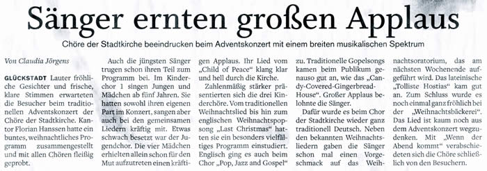 Dienstag, den 04. Dezember 2018 Sie hatten viel Freude an ihrem Auftritt: Die jungen Sänger des Kinderchores 1. FOTO:JOERGENS |