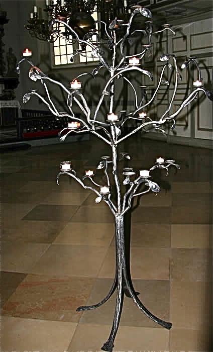 Altaraufsatz in Form einer Stufenpyramide.