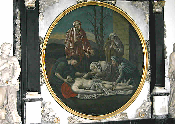 Das runde Gemälde aus dem Jahre 1752 zeigt die "Beweinung Christi".